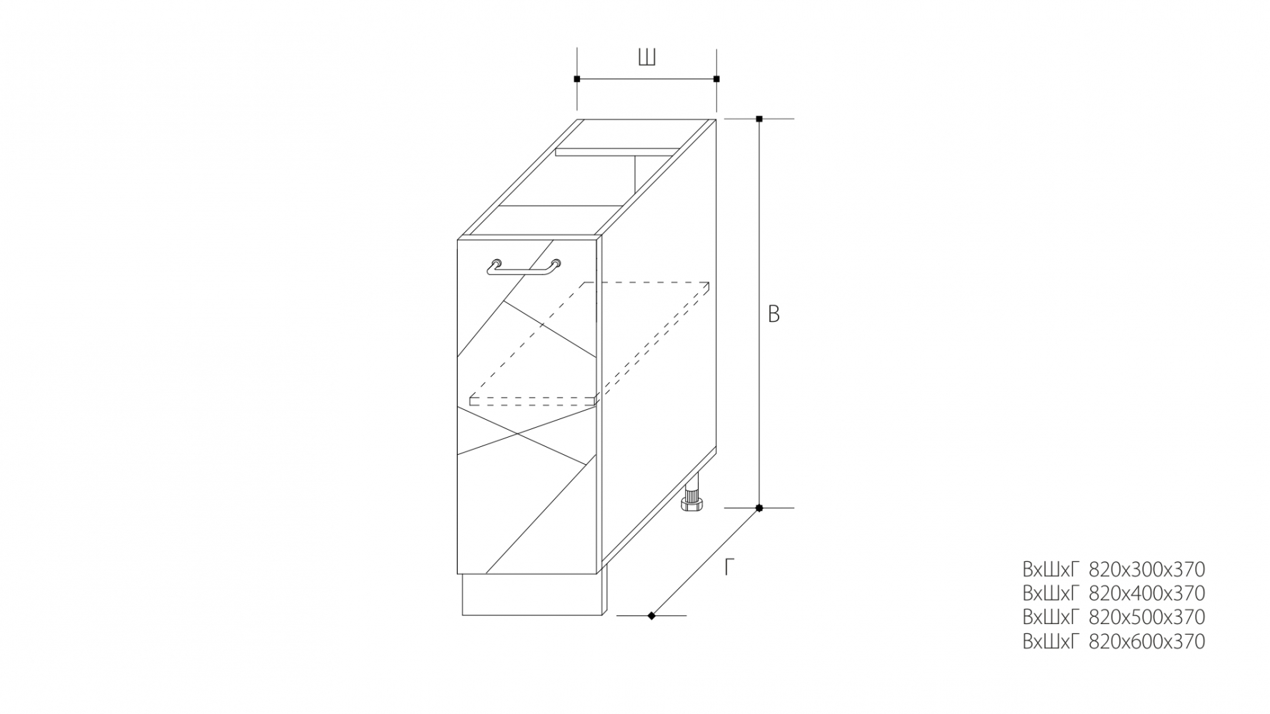 ВхШхГ: 820х600х370 мм.